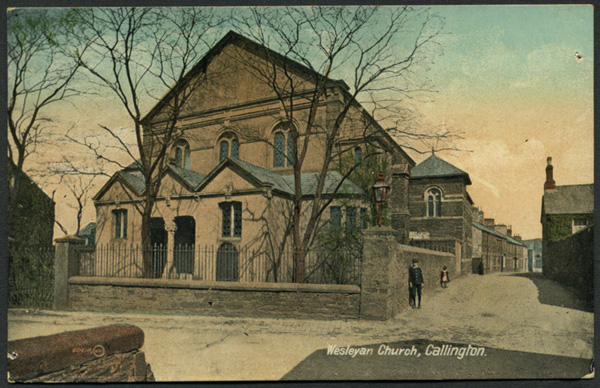 Church, Callington, 1909 This building still exists (or it did last time I looked !) as "West End Chapel", and I spent much time in this building in my youth, for various 'activities'. As well as being the a Methodist Chapel, it was also used as a 'teaching annexe' by local schools I attended, by the community for various events, and by some of my ancestors - who lived very close by in the 1800's up to the early 1900's - right back to it's very first origins.
