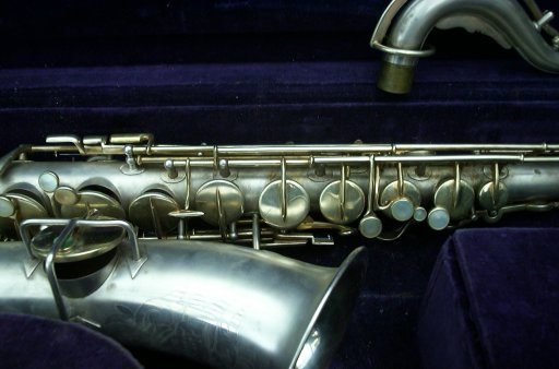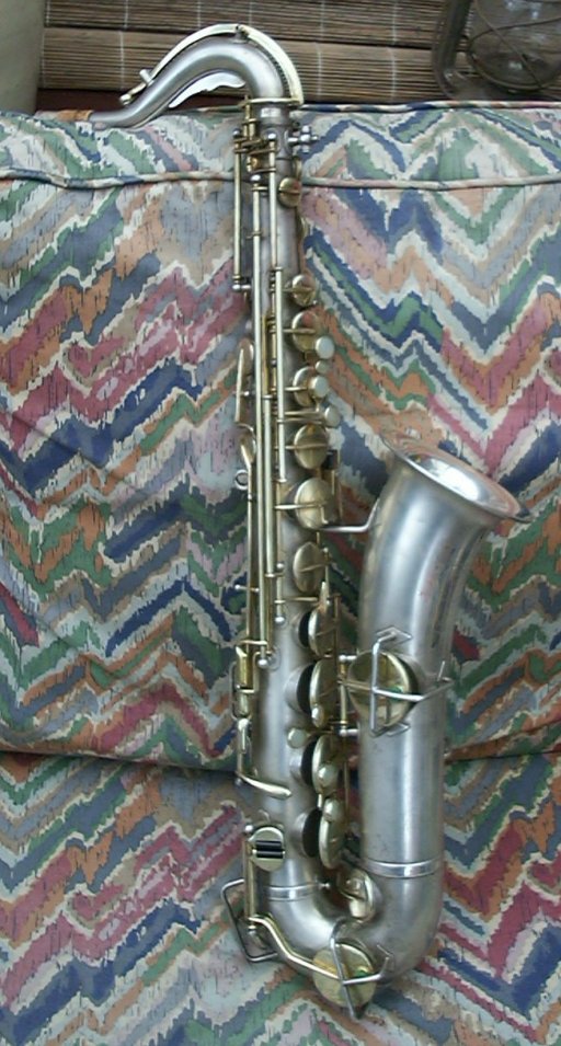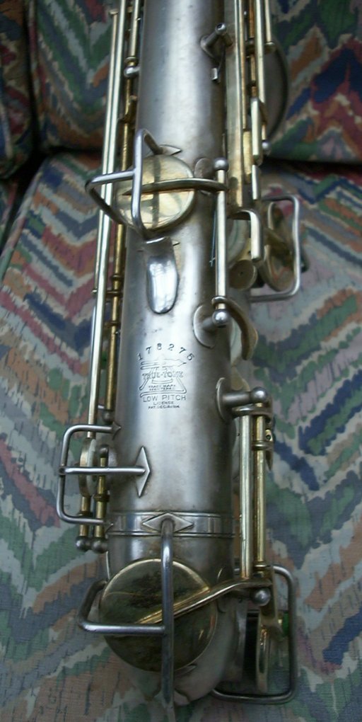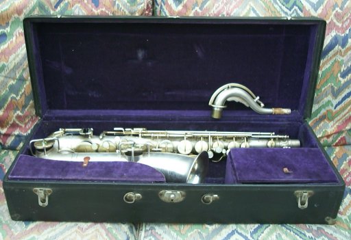 Buescher 'Truetone' Two-Tone - Matt & bright Silver body, with contrasting gold-wash action and inner bell. Playable on original 'snap-in' pads. Currently stripped for cleaning, original case and mouthpiece etc.