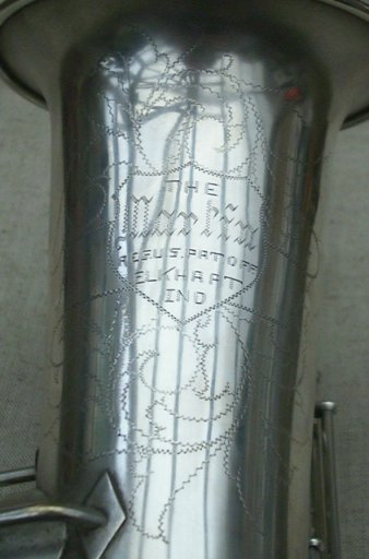 This C-Melody saxophone has been stripped completely, hand-cleaned, lubricated, and re-corked and re-felted wherever necessary. The pads have been replaced at some time, are good quality and still very serviceable. The sax has been regulated, tested, and is ready to play. To see more pictures, including some taken when it was stripped down, please click here to see more pictures. The vertical lines showing on the 'The Martin' engraving picture are just reflections.