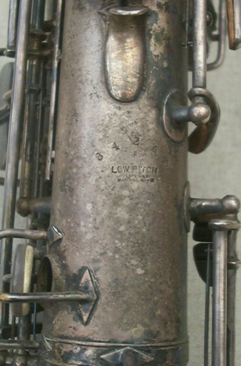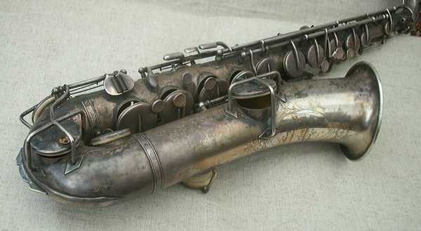 Very nice sax, obviously needs cleaning, re-corking & re-padding etc. - but no dents or repairs that I can see !!
