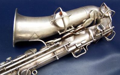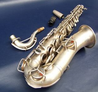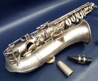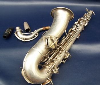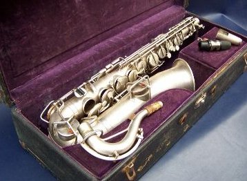 This saxophone is bright and matt silver and was purchased from the original owner's estate. She was a music teacher who passed away at the age of 98. Her family said the saxophone dated back to the early 1920's, and has not been played in a number of years. There is no corrosion on the finish, just needs a polish. There are no dents or dings on the saxophone- it is a beauty!!! All the keys on the saxophone move freely, just like they should. The original case has some normal wear on the outside, but the inside is nice and clean and odour free. No musty smells, this comes from a smoke-freehome. All the latches on the case work .