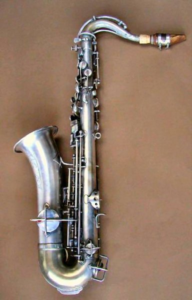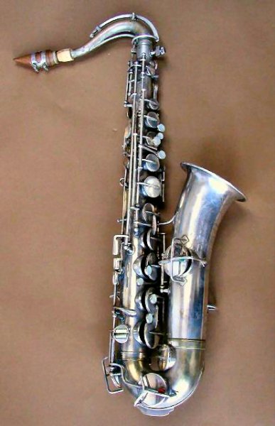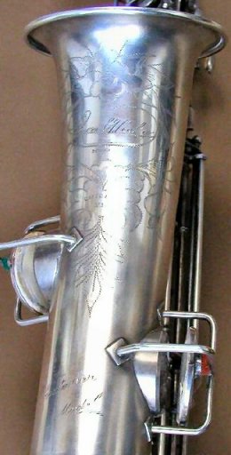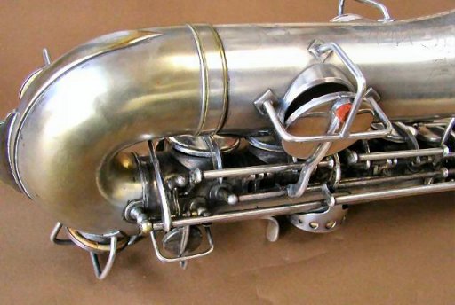 On this sax, note the Martin style bevelled toneholes and bow protector -