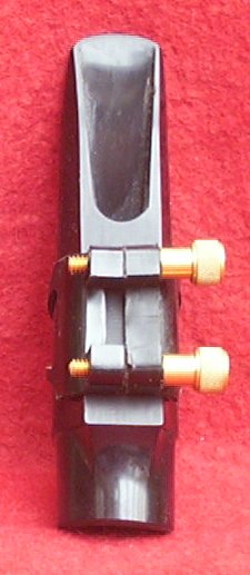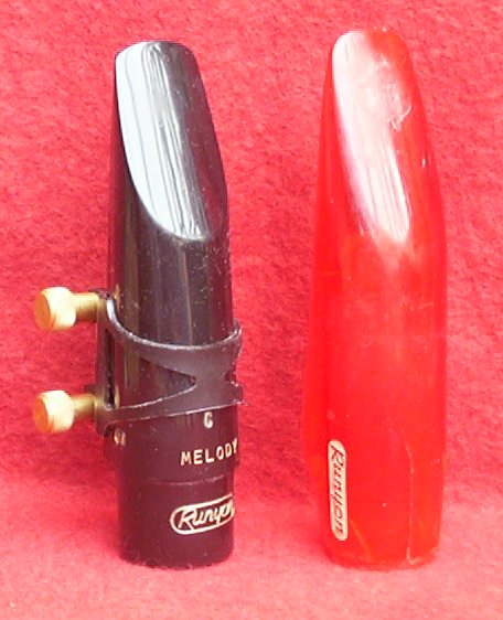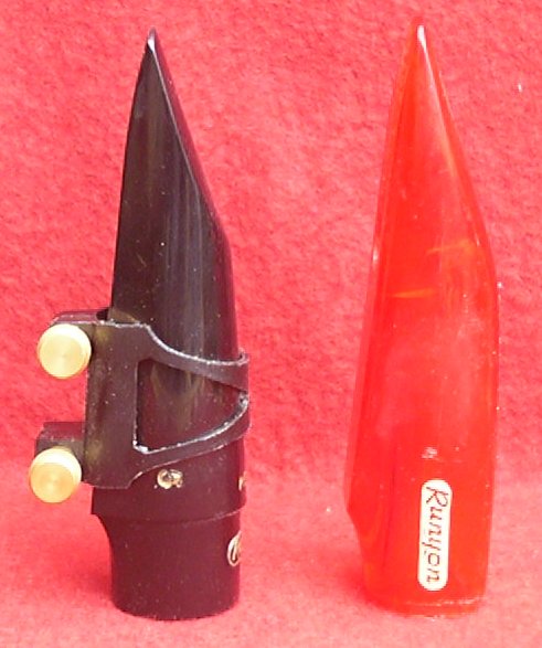 Runyon C-Melody Sax Mouthpiece #5 lay (red Runyon tenor mouthpiece shown for size comparison only)